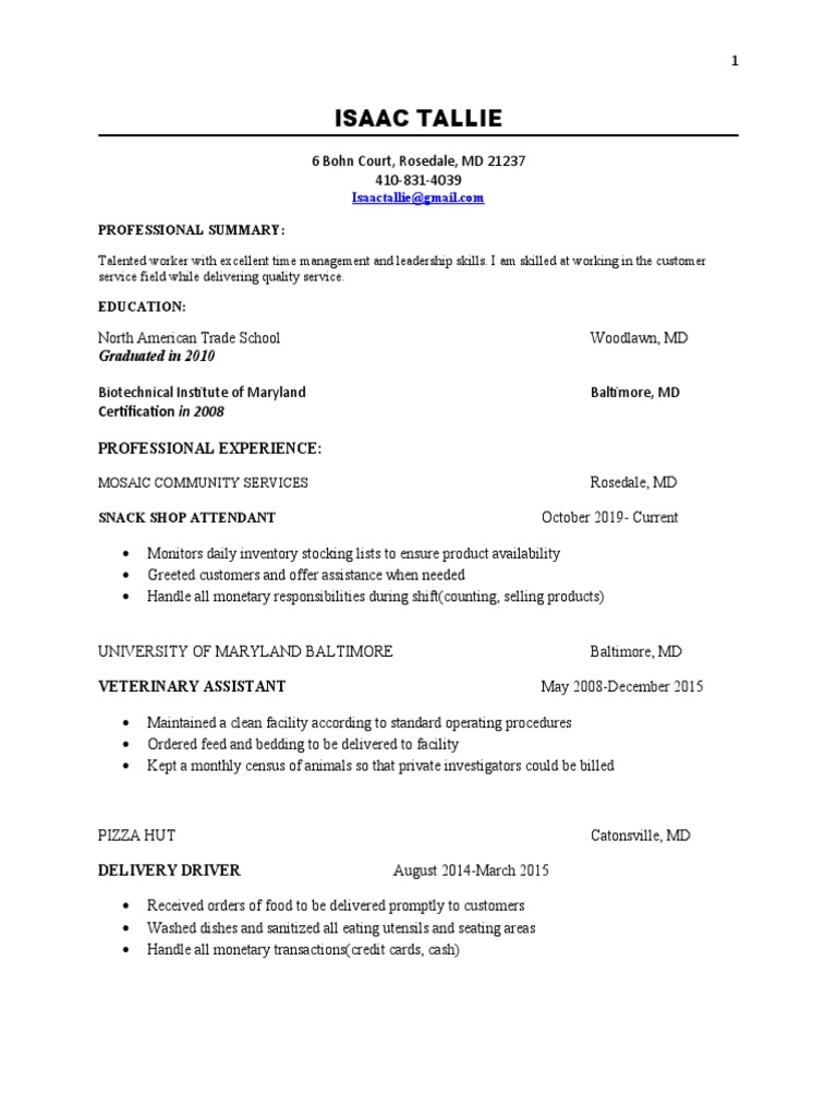 Isaac Tallie Resume Pdf